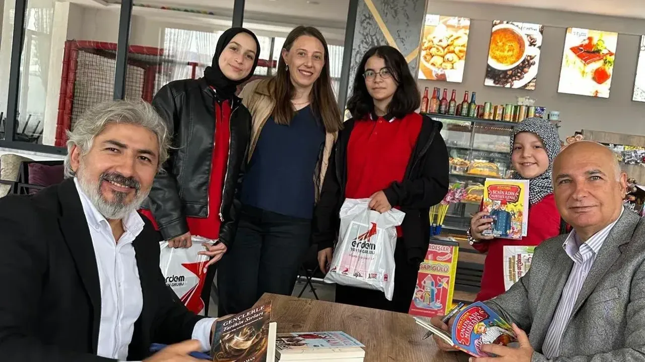 “Osmanlı’nın kuruluş toprağı Domaniç’te böyle bir etkinlikte bulunmak benim için mutluluk. Öğrencilerle ‘Kuruluş Gezisi’ ve ‘Kurtuluş 1922’ kitaplarım üzerinden tarih sohbetleri yaptık. Lise öğrencileriyle de ‘Gençlerle Tarihin Sırları’ kitabım çerçevesinde verimli bir buluşma gerçekleştirdik” ifadelerini kullandı.