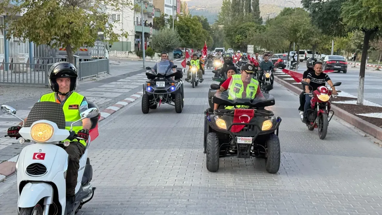 Motoclub Türkiye Domaniç Temsilcisi Servet Aslan öncülüğünde saat 19.00’da Domaniç Garajından hareket eden motosikletliler, “demir atlarıyla” cadde ve sokaklarda tur attı. Türk bayraklarıyla süslenen motorlar, Zafer Bayramı’nın 103. yılına ayrı bir anlam kattı.